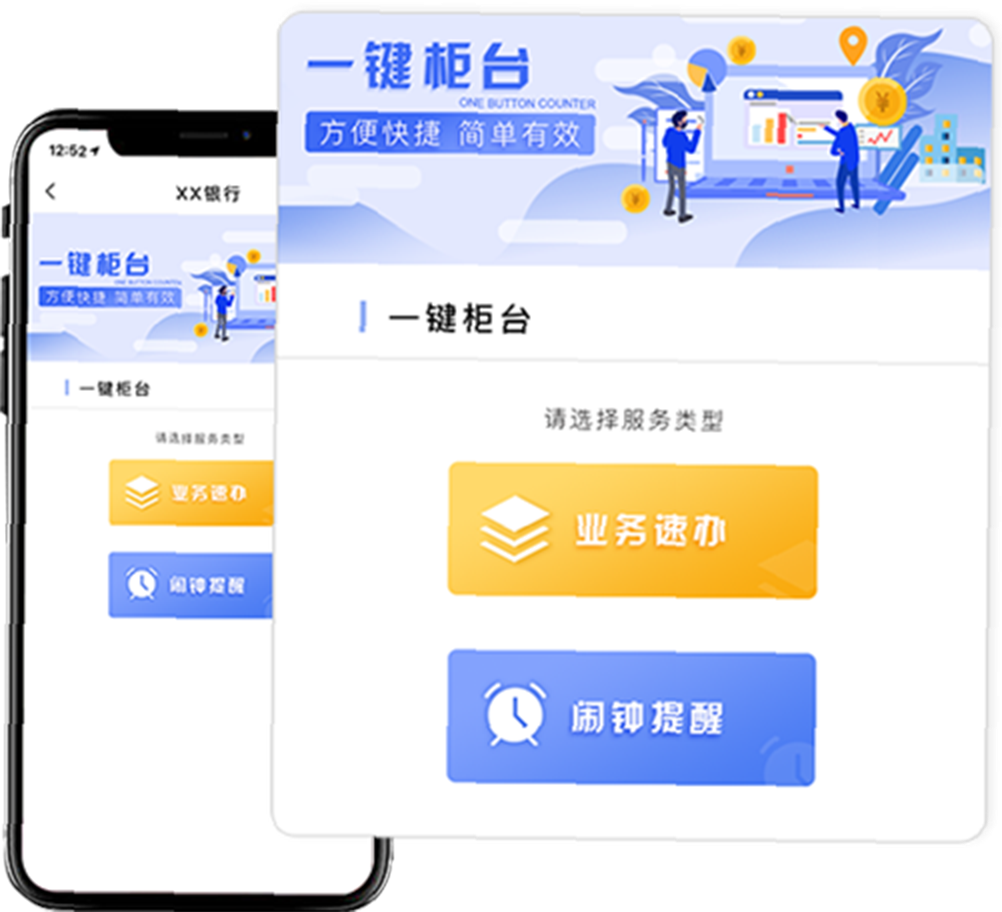 一键柜台是银行柜台业务的客户自助办理系统,是银行柜台的辅助系统,客户通过扫描银行的专属二维码,即可自助线上办理业务,包括业务速办和闹钟提醒两类。一键柜台是银行柜台业务的客户自助办理系统,是银行柜台的辅助系统,客户通过扫描银行的专属二维码,即可自助线上办理业务,包括业务速办和闹钟提醒两类。